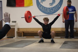 Matthias Reiter wurde Erster im Jahrgang 2013, Gewichtsklasse bis 55 kg. Nach 22 und 24 kg steigerte er auf 26 kg, die neue persönliche Bestleistung für ihn bedeuteten. Auch imStoßen gelang ihm eine fehlerfreie Serie, bei der er nach 33 und 37 kg seine Bestleistung von 40 kg einstellte.