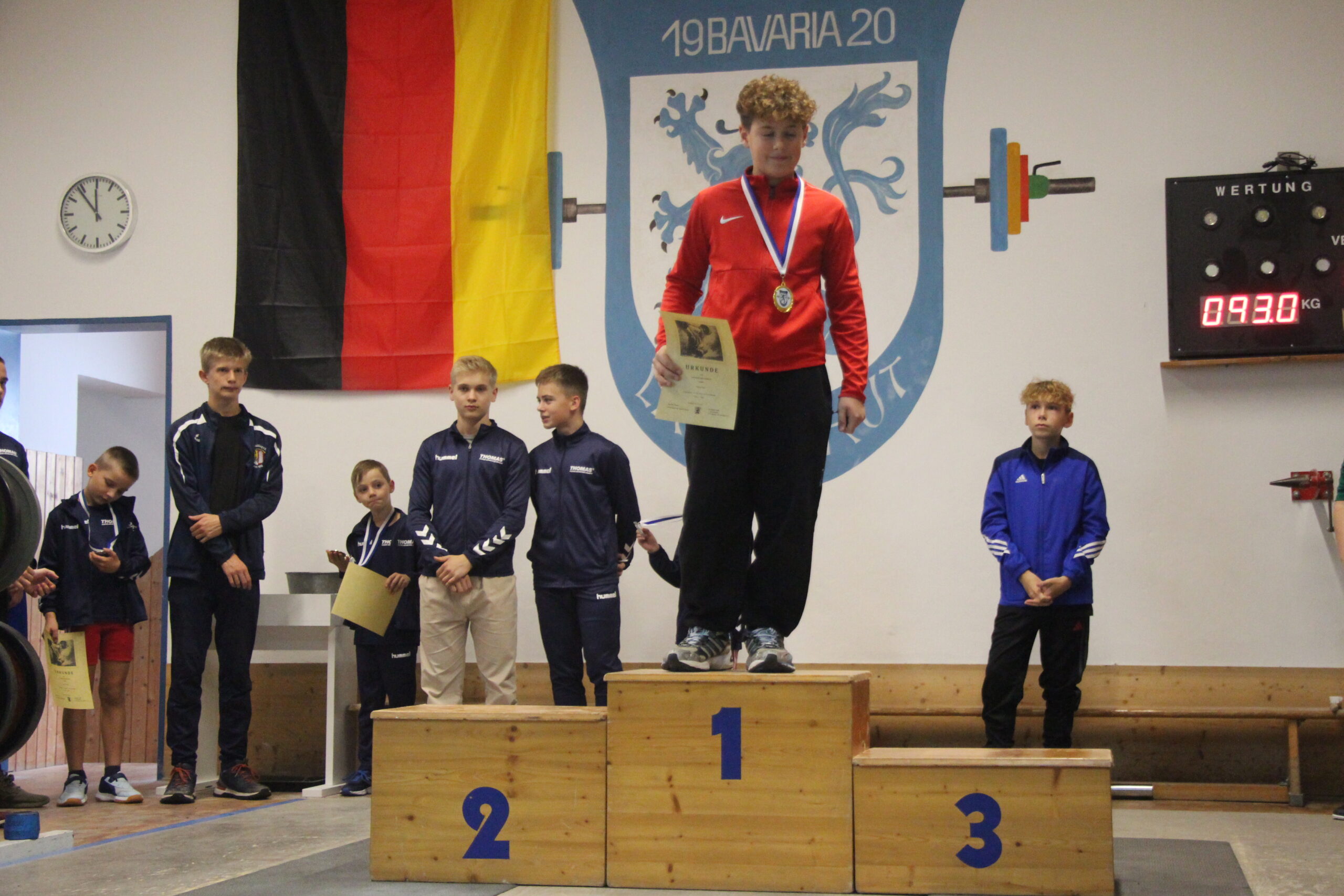 Matthias Reiter wurde Erster im Jahrgang 2013, Gewichtsklasse bis 55 kg. Nach 22 und 24 kg steigerte er auf 26 kg, die neue persönliche Bestleistung für ihn bedeuteten. Auch imStoßen gelang ihm eine fehlerfreie Serie, bei der er nach 33 und 37 kg seine Bestleistung von 40 kg einstellte.