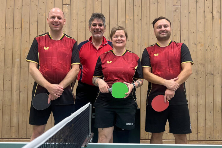 Mannschaftsfoto Herren III (aus Saison 25/26), v.l.n.r.: Thomas Mahlich, Uwe Wuddel, Kathrin Fromm, Sergej Ribson