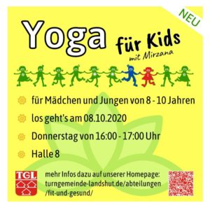 „Yoga für Kids“ zählt ebenso zu den neuen Angeboten: Bei der Yogastunde für Kinder im Alter zwischen 8 bis 10 Jahren steht der Spaß an erster Stelle. Durch spielerisches Erlernen der einzelnen Asanas (Yogastellungen) wird die Konzentration gefördert, die Fitness gesteigert und das Selbstbewusstsein des Kindes gestärkt. Verschiedene Studien belegen: Kinderyoga wirkt sich positiv auf das Lernverhalten und ein konfliktloses Miteinander von Kindern aus. Gleichzeitig baut es zusätzlich den Stress ab und fördert die innere Balance. Start der neuen Stunde ist am 8.Oktober. Die Stunde findet immer donnerstags von 16 bis 17 Uhr in der Halle 8 statt.