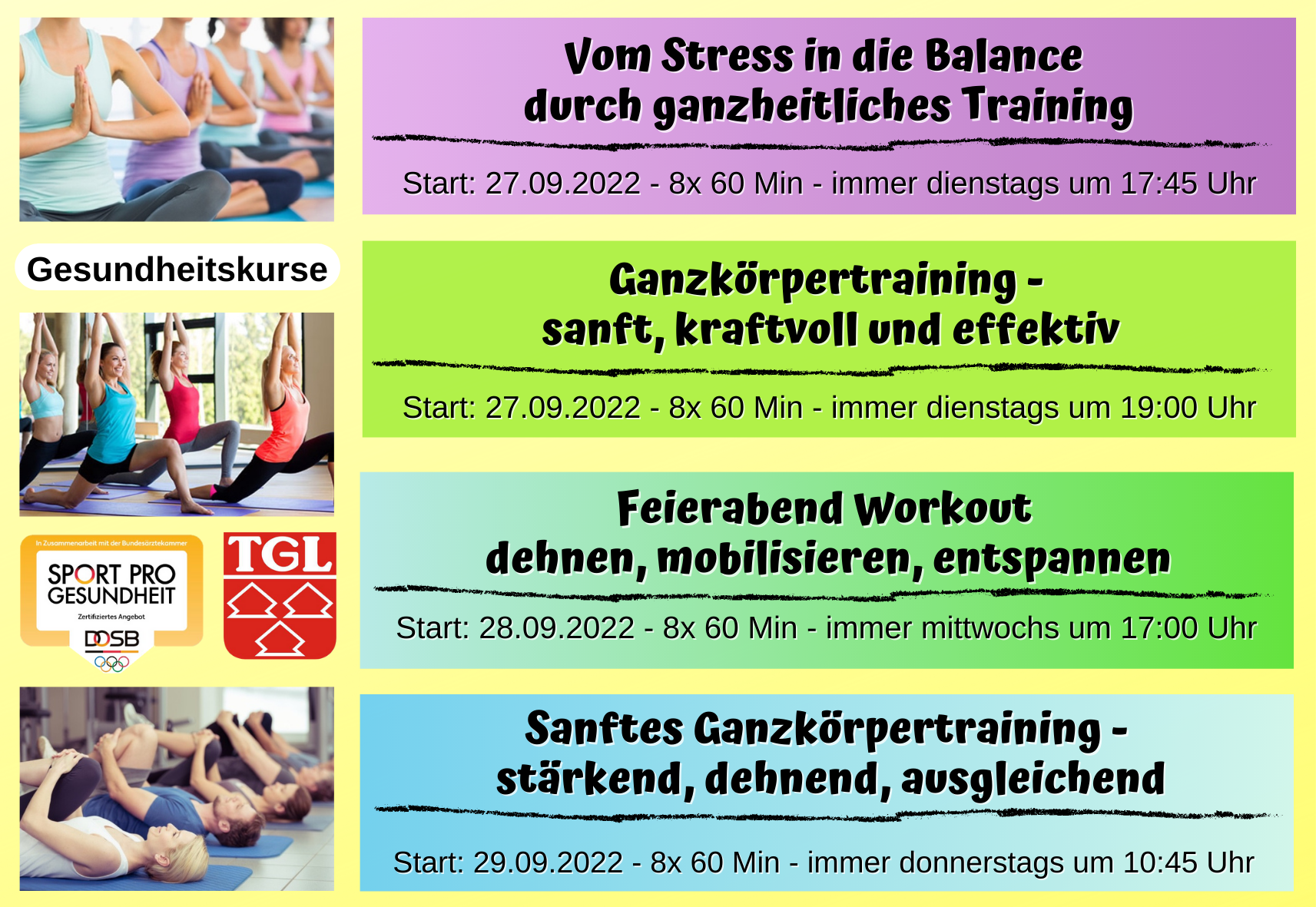 „Sport in der Prävention“: Wieder TGL-Gesundheitskurse im Herbst – Anmeldung läuft bereits, auch online
