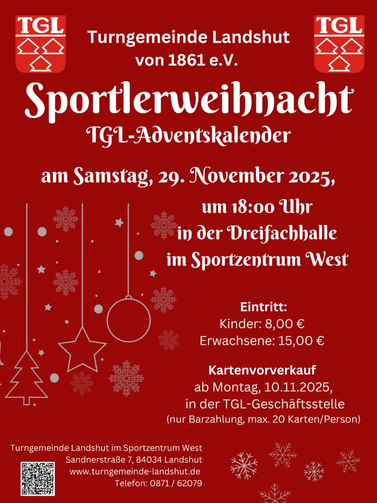 Am ersten Adventssamstag, 29. November, ist es endlich wieder so weit! Die große TGL-Sportlerweihnacht findet an diesem Abend ab 18 Uhr in der Dreifachhalle der Turngemeinde statt. Die Veranstaltung läuft dieses Jahr ganz unter dem Motto „TGL-Adventskalender“. Freuen Sie sich auf ein sportliches, weihnachtliches und abwechslungsreiches Programm, das durch unsere zahlreichen Abteilungen mit viel Leidenschaft gerade vorbereitet und eingeübt wird.