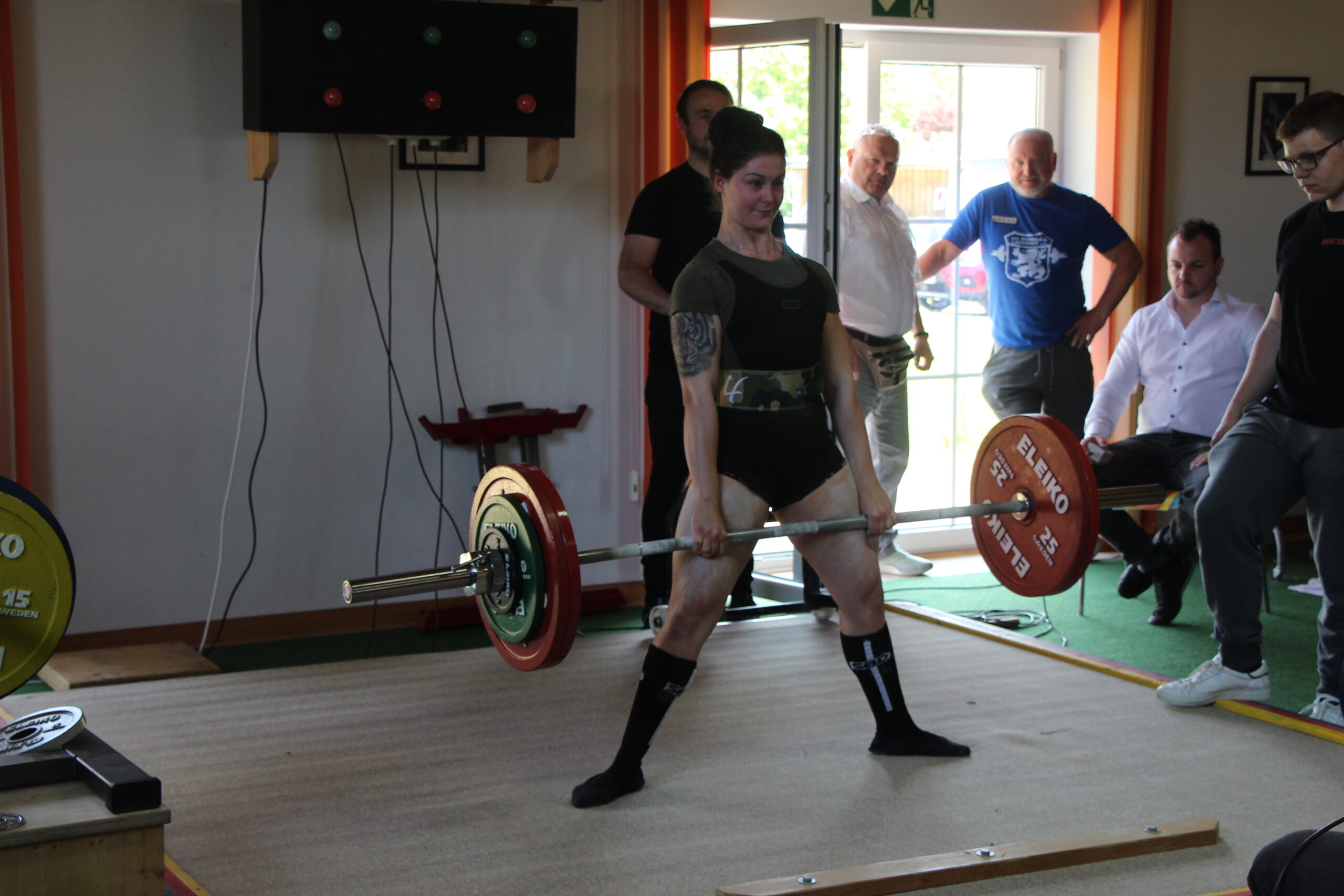 So richtig zur Sache ging es dann bei den Kraftdreikämpfern. Zunächst mussten die TGL-Athletinnen Farbe bekennen. In Bestform präsentierte sich Julia Kristina Ziegler in ihrem ersten Wettkampf bei den Juniorinnen (18-23 Jahre). Mit einem Gesamtergebnis über 370 Kilogramm (Kniebeuge 135 kg, Bankdrücken 70 kg, Kreuzheben 165 kg) siegte die TG-Athletin in der Gewichtsklasse bis 63 Kilogramm (Classic). In der Aktivenwertung (23-40 Jahre) bot Katja Töpfl sodann überzeugende Leistungen. Nach gültig gebeugten 85 Kilogramm in der Kniebeuge, stemmte die Landshuterin 52,5 Kilogramm im anschließenden Bankdrücken. In der Schlussdisziplin Kreuzheben liftete Töpfl dann noch souverän 107,5 Kilogramm. In der Endabrechnung ergab dies 245 Kilogramm und bedeutete den zweiten Rang in der Gewichtsklasse bis 57 Kilogramm (Classic). Mit hervorragenden Leistungen trumpfte im Anschluss Sandra Augustiniok in der Kategorie bis 69 Kilogramm auf. Starke 152,5 Kilogramm in der Kniebeuge, 92,5 Kilogramm im Bankdrücken und 170 Kilogramm im Kreuzheben summierten sich zu einer Gesamtleistung von 415 Kilogramm. Damit wurde Sandra überlegen niederbayerische Meisterin. Ihre Trainingskollegin Pola Wittman erreichte hier mit 292,5 Kilogramm (Kniebeuge 102,5 kg, Bankdrücken 65 Kilogramm, Kreuzheben 125 kg) Rang drei in der gleichen Gewichtsklasse. In der Altersklasse vier (70-80 Jahre) siegte die TGL-Athletin Dagmar McSwain in der Kategorie bis 57 Kilogramm (Classic). Als älteste Teilnehmerin beugte sie 53 Kilogramm (neuer bay. Rekord), drückte 40 Kilogramm auf der Bank und zog 77,5 Kilogramm im Kreuzheben (Gesamtleistung 170,5 kg). Bei den Männern lieferte Alexander Zeidler bei den Aktiven (23-40 Jahre) im Kraftdreikampf ein überzeugendes Debüt mit einem beeindruckenden Gesamtergebnis über 665 Kilogramm (Kniebeuge 220 kg, Bankdrücken 160 kg, Kreuzheben 285 kg – Classic) und einer Goldmedaille im Schwergewicht (+ 120 kg). Weitere Topresultate gab es in den anschließenden Altersklassen. Hier wurde Milan Makra in der Altersklasse eins (40-50 Jahre) in der Kategorie bis 105 Kilogramm (Classic) mit einer Gesamtleistung über 510 Kilogramm Erster (Kniebeuge 180 kg, Bankdrücken 120 kg, Kreuzheben 210 kg). Nach längerer Wettkampfpause gelang Juri Makuschkin ein erfolgreicher Einstieg in der Altersklasse drei (60-70 Jahre). Er erreichte mit einem Gesamtresultat über 472,5 Kilogramm (Kniebeuge 160 kg, Bankdrücken 122,5 kg, Kreuzheben 190 kg) Platz eins im Leichtschwergewicht (Classic, -82,5 kg). Zuletzt zeigte Franz Schmidt noch Proben seines Könnens. Ihm gelang mit 302,5 Kilogramm (Kniebeuge 102,5 kg, Bankdrücken 75 kg, Kreuzheben 125 kg) eine neue persönliche Bestmarke in der Gewichtsklasse bis 66 Kilogramm (Classic). Damit wurde der TGL-Athlet verdient niederbayerischer Meister. [M.W.]