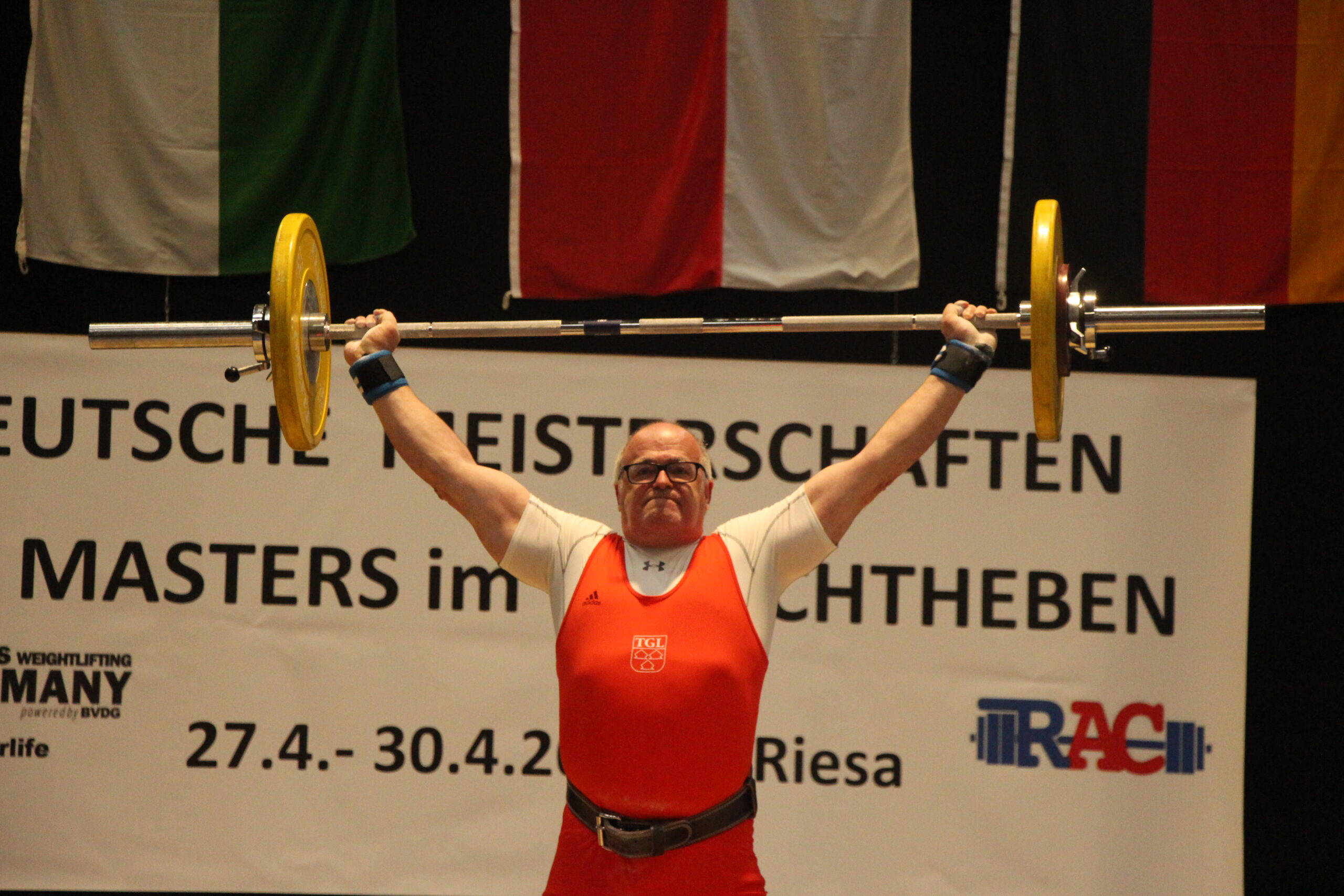 Im Reißen schaffte der Landshuter im zweiten Versuch 60 kg, der Brandenburger legte jedoch 65 kg vor.